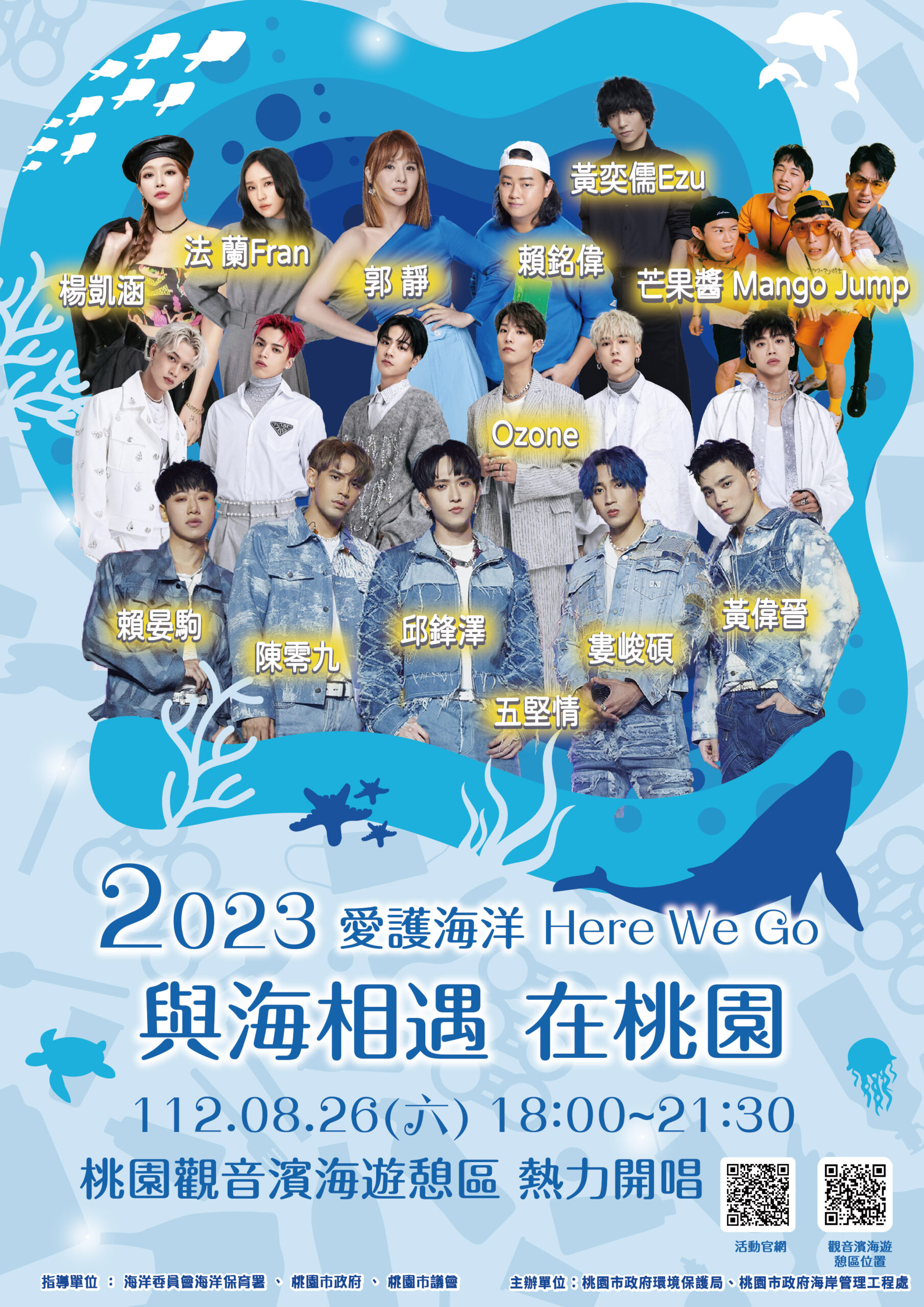 「2023世界海洋日在桃園Rock n’ Run」活動活動資訊 / 2023 年 7 月 4 日 一、活動時間:112年8月26日(六)。 二、活動地點:桃園觀音濱海遊憩區。 本活動由桃園市政府海岸管理工程處辦理,詳情請參閱附檔活動海報。