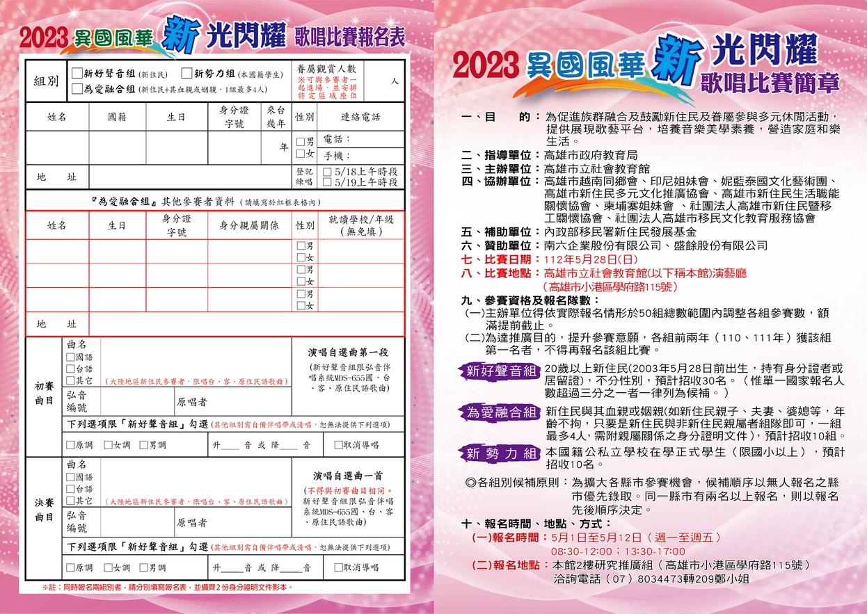 高雄市立社會教育館 -「2023異國風華─『新』光閃耀」歌唱比賽